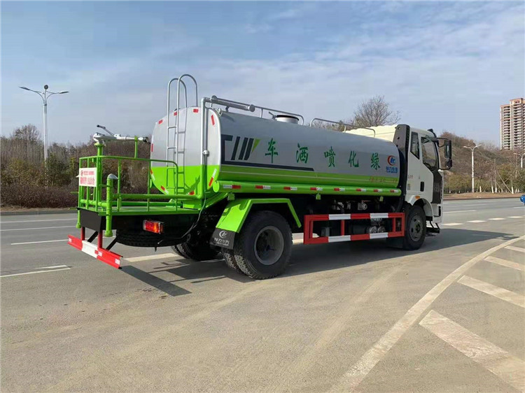 專用配置:罐體容積 13立方,罐體采用國標Q235碳鋼材質,罐體厚度4MM,前后封頭5MM加厚型,罐體內雙層隔板具有防波蕩作用,以減輕汽車行駛時罐內液體沖擊;灑水車整車及外形尺寸嚴格按照**機動車公告制作而成;裝配大功率專用灑水泵,前沖、后灑、側噴、后平臺帶綠化灑水炮,灑水炮可全方位旋轉,可連續(xù)調成直沖狀、大雨、小雨、毛毛雨;配消防接口,自流閥,濾網,帶自吸自排功能。前封頭帶水位計,后平臺主管路帶1寸澆花接口,后爬梯,帶1個消防接頭,帶1個自流閥,1個過濾裝置,其余標配。1、可選裝后平臺帶霧炮機組用于噴霧降塵、農藥噴灑作業(yè);2、可選裝前置電子灑水炮駕駛室操作;3、可選裝氣動球閥駕駛室操作。