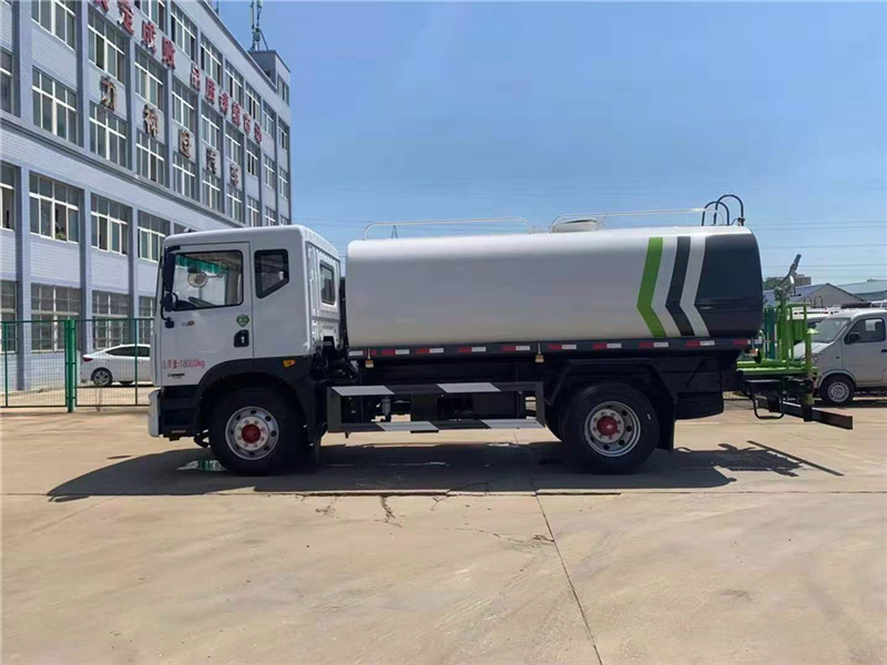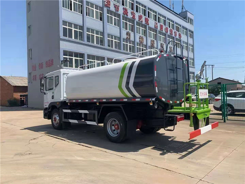 帶前部沖洗路面噴灑裝置,兩側面噴灑裝置,帶后部工作平臺、平臺上安裝綠化灑水炮(炮噴射形狀可調),可調直沖狀、大雨、中雨、毛毛雨,可連續調節,射程可達28米,垂直吸程≤7米,另加裝高效率車載式風送噴霧機,噴藥炮霧化效果好,可遠程噴霧。帶消防接口、自流閥,可自吸自排。