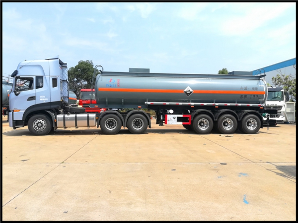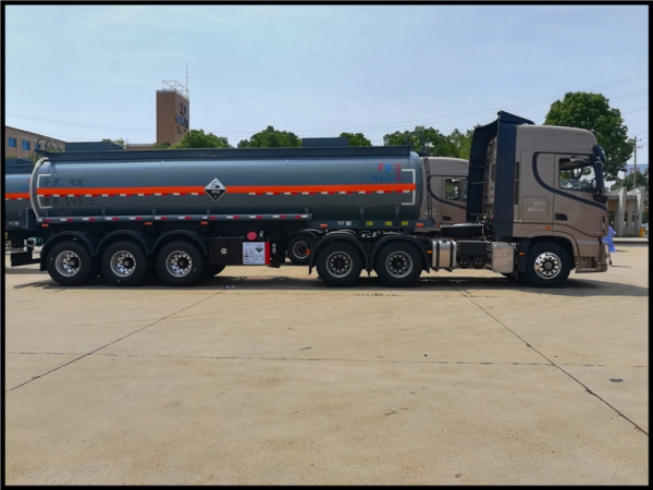 罐體形狀為純圓罐,封頭為碟型封頭,使得性能更加穩(wěn)定,完全符合國(guó)家標(biāo)準(zhǔn)。運(yùn)輸介質(zhì):見上表格描述的各種化工液體。化工半掛罐車根據(jù)介質(zhì)的不同,可選裝優(yōu)質(zhì)Q235碳鋼、不銹鋼、高純鋁、鋼襯塑等材料制作罐體。