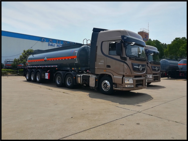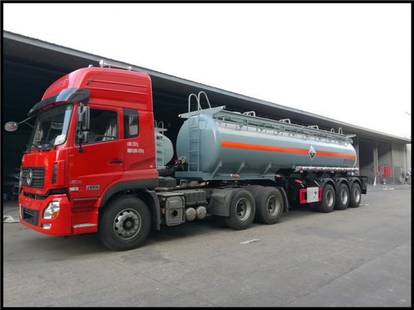該款濃硫酸半掛車公告型號(hào)為大力牌DLQ9401GFW型腐蝕性物品罐式運(yùn)輸半掛車。襯塑加工后配BPW車軸,鋁合金鋼圈及鋁合金附件自重7.6噸,可裝運(yùn)32.4噸,核載32.5噸,賺錢利器,強(qiáng)烈推薦!