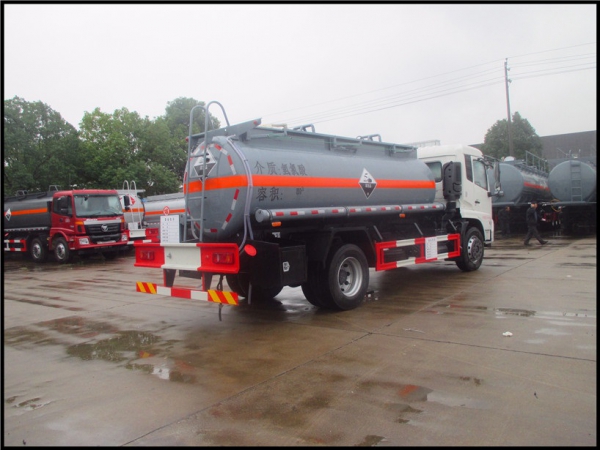 罐體采用碳鋼制作外殼,厚度符合國標(biāo)GB18564,襯塑容積10方左右,罐體截面正圓形,罐體內(nèi)部通過鋼網(wǎng)過度,內(nèi)襯聚乙烯16MM厚,鋼襯塑雙隔板結(jié)構(gòu),罐頂1個(gè)全塑進(jìn)料口,1個(gè)呼吸閥,帶碳鋼折疊護(hù)欄,罐頂帶圍邊,圍邊內(nèi)瀝青防腐處理。罐體后尾部底口處1個(gè)DN100不銹鋼內(nèi)襯四氟緊急切斷閥帶緊急開關(guān)后保險(xiǎn)杠控制,通過襯塑三通管道,后尾部左右各1個(gè)DN80塑料球閥帶塑料出口。1個(gè)工具箱,PVC炮筒管2根,滅火器2只。罐體后尾部爬梯1只。