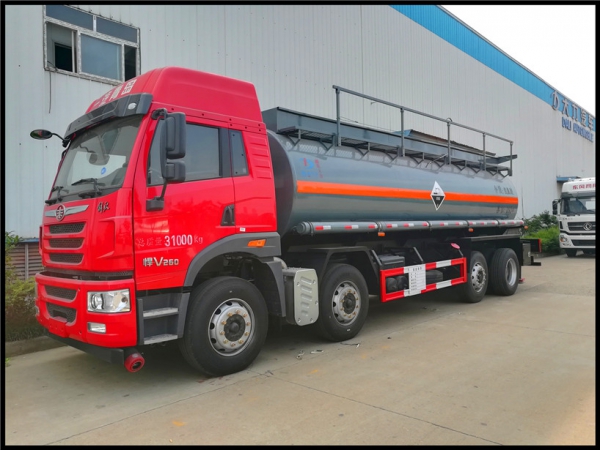 罐體形狀為純圓罐,封頭為碟型封頭,使得性能更加穩定,完全符合國家標準。運輸介質:見上表格描述的各種化工液體。化工罐車根據介質的不同,可選裝優質Q235碳鋼、不銹鋼、高純鋁、鋼襯塑等材料制作罐體。
