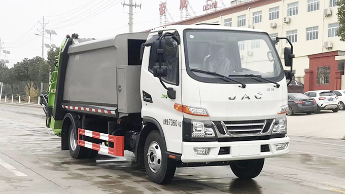 江淮6方壓縮垃圾車,軸距:3365,采用駿鈴V3,單排1700,云內德威D25TCIF1(云內德威150馬力),星銳6檔變速箱,4.5噸后橋,700R16輪胎,180*6雙層大梁,斷氣剎,電動門窗,遙控中控鎖,定速巡航,多功能方向盤,原廠空調,上裝配置:標配:(1)弧形箱體,箱體為高強度猛鋼。(2)國產液壓配件及配套恒力油缸、皖液油泵、嘉善取力器,揚州中梅多路閥 ,帶背壓閥;(3)后帶翻桶架,可掛2只240L方塑料桶。(4)車載專用定制版PLC電控系統,帶一鍵操作,單只電控操作盒。填裝器,舉升油缸帶平衡閥。(5)填裝器底部一個污水箱。(6)手動密封蓋。選裝:翻轉三角斗。擺臂機構,全密封斗,集成硅膠面板。整車型號:HDW5071ZYSH6,整車尺寸:6920/6540 X2100,2200 X2520,2620。