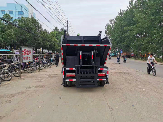 專用功能說明: 國六東風多利卡D6無泄漏后裝式壓縮垃圾車整車型號CLW5078ZZZ6型自裝卸式垃圾車,總質(zhì)量:7360kg,額定載質(zhì)量:4150kg,額定載質(zhì)量:2080kg,箱體容積:7立方,軸距:3308mm,國六東風多利卡D6底盤,朝柴130馬力發(fā)動機,五檔變速箱,19款豪華駕駛室,空調(diào),中控鎖,電動升降玻璃,多功能方向盤,鋼絲胎,ABS。 國六東風多利卡D6無泄漏后裝式壓縮垃圾車采用系統(tǒng)**模塊按照CE標準,具有多重保護措施,確保操作人員安全,杜絕二次污染,箱體采用連續(xù)焊接,保證運輸沒有“滴水漏料”現(xiàn)象,裝載量大,箱體容積為7方,輕量化設(shè)計,刮板壓縮,高位卸料,可與其它設(shè)備對接,壓縮垃圾站和其它車輛配合工作可提高工作效率,降低運營成本,垃圾分類的好幫手。 國六東風多利卡D6無泄漏后裝式壓縮垃圾車操作演練過程分解圖片: 1、垃圾桶置于車輛后方上料機構(gòu)處,垃圾桶**壓桶限位處 ![]() 2、垃圾桶自動升起倒入箱體,落下垃圾桶,刮板開始刮料 3、 放下后部左右支腿 4、舉升箱體,進行卸料 程力威無泄漏垃圾中轉(zhuǎn)與垃圾站對接 |