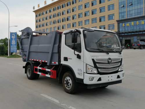 福田歐馬可國六無泄漏高位掛桶壓縮式垃圾車