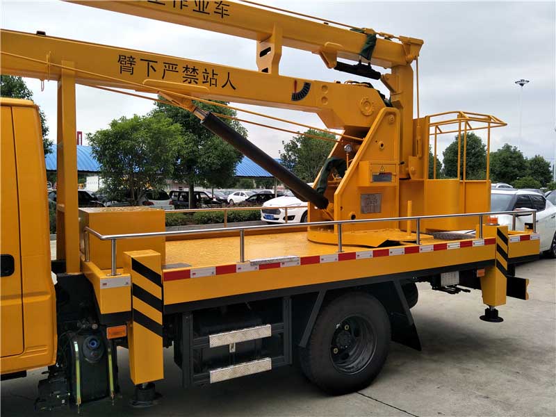 江鈴(新款)雙排高空作業車工程黃駕駛室,軸距3360mm,江鈴115馬力國五發動機,油剎,五檔變速箱,7.00R16鋼絲胎 江鈴(新款)雙排高空作業車,帶ABS.加裝空調。作業高度14米,液壓360度全回轉,三節折疊臂,1噸可伸縮式吊鉤。單液壓舉升缸,帶雙向平衡閥,電控操作舉升臂,四支液壓油缸可調式支腿帶雙向液壓鎖(支腿操作為手動操作,可單獨**)、**大作業幅度6.2米、**大起吊高度7.5米。
